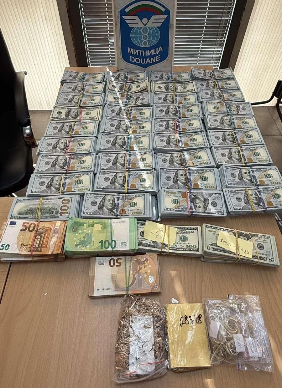 Недекларирани 740 000 щатски долара, 30 000 евро и 1288 грама злато откриха митническите служители при проверка на лек автомобил, излизащ от страната. На 29.07.2025 г. на Митнически пункт Капитан Андреево пристига лек автомобил с хасковска регистрация, пътуващ от България за Турция. В автомобила пътували водачът и неговия спътник - български граждани. След анализ на риска превозното средство е селектирано за щателна митническа проверка, при която в черен сак на задната седалка са открити парични средства в щатски долари и евро. Установената валута е 740 000 щатски долара и 30 000 евро с обща левова равностойност 1 300 579 лева. При извършения личен преглед на водача на автомобила в ръчна мъжка чантичка, преметната през рамото му, са открити пакети, съдържащи 1288 грама артикула от жълт метал. Според направената от вещо лице експертиза част от тях, под формата на ленти, люспи и два къса с неправилна форма, са 672.40 грама 24–каратово злато, проба 999.9 и са на стойност 120 386 лева. Този вид злато, представляващо „стоки използвани като високоликвидни средства за съхраняване на стойност“ съгласно разпоредбата на Валутния закон и на Регламент (ЕС) 2018/1672 се счита за „парични средства“. Недекларираните парични средства - 740 000 щатски долара, 30 000 евро и 672.40 грама злато на обща стойност 1 490 698 лева са задържани. По случая с паричните средства е образувано досъдебно производство.