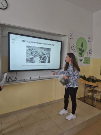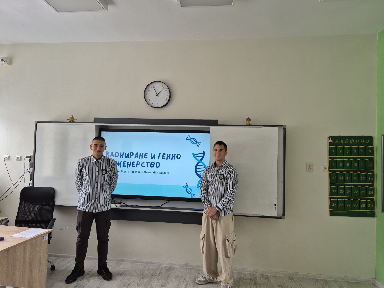 Тази година, учениците Теодора Камберова, Мартин Георгиев, Иванина Ивайлова и Виктория Камберова от 9 в клас, както и Борис Ангелов и Николай Николаев от 10 г клас, представиха впечатляващи презентации пред своите съученици. Темите на техните доклади обхващаха важни аспекти на съвременната наука, включително „Етиката в науката“, „Генни модификации“ и „Клониране и генно инженерство“. Подготовката на учениците беше ръководена от г-жа Величка Младенова, старши учител по биология и здравно образование.