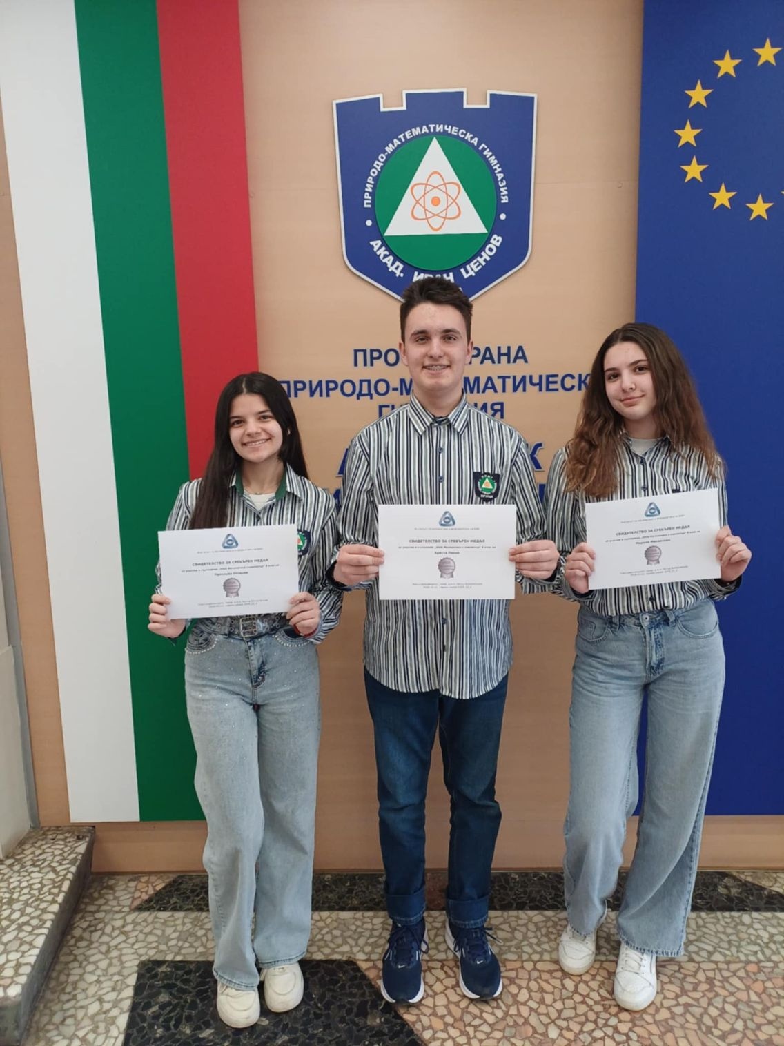 Златни медалисти са учениците: Велизар Маринов, Иван Кюрчев и Мартин Ангелов (XI г клас).