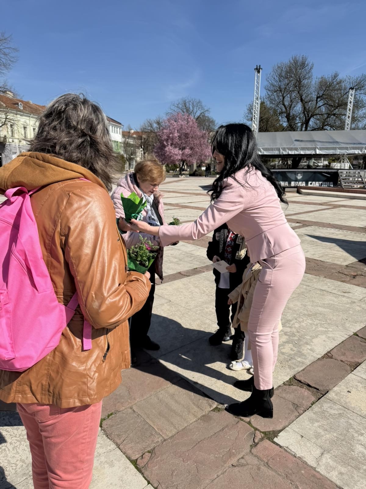 Кандидатите изказаха благодарност към всеки жител на Бяла Слатина, който се е спрял за разговор, и поднесоха празнични поздрави на всички с цветни имена.