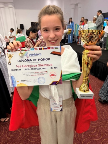 Седмокласничката Ния Шкетиева от ППМГ „Акад. Иван Ценов“ във Враца, постигна забележителен успех на Световното първенство по ментална аритметика WAMAS 2025. Състезанието се проведе в края на месец ноември в Дубай, Обединени Арабски Емирства. Представяйки България, Ния победи стотици участници от множество държави и спечели престижната титла супершампион WAMAS 2025.