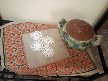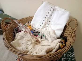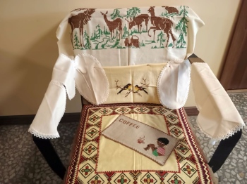 В етнографската част на изложбата са представени 25 експоната, изработени от покойната Верка Дичова Дамяновска (1941-2025 г.) и дарени от нейната снаха Светла Дамяновска. Сред тях са комплекти тишлайфери за маса, бродирани салфетки за кафе, покривка, ковьорчета, каре с ресни, калъфки за възглавници, дамска нощница от поплин с бродерия, женски корсет, триъгълен бял шал, бродирана носна кърпичка и др.