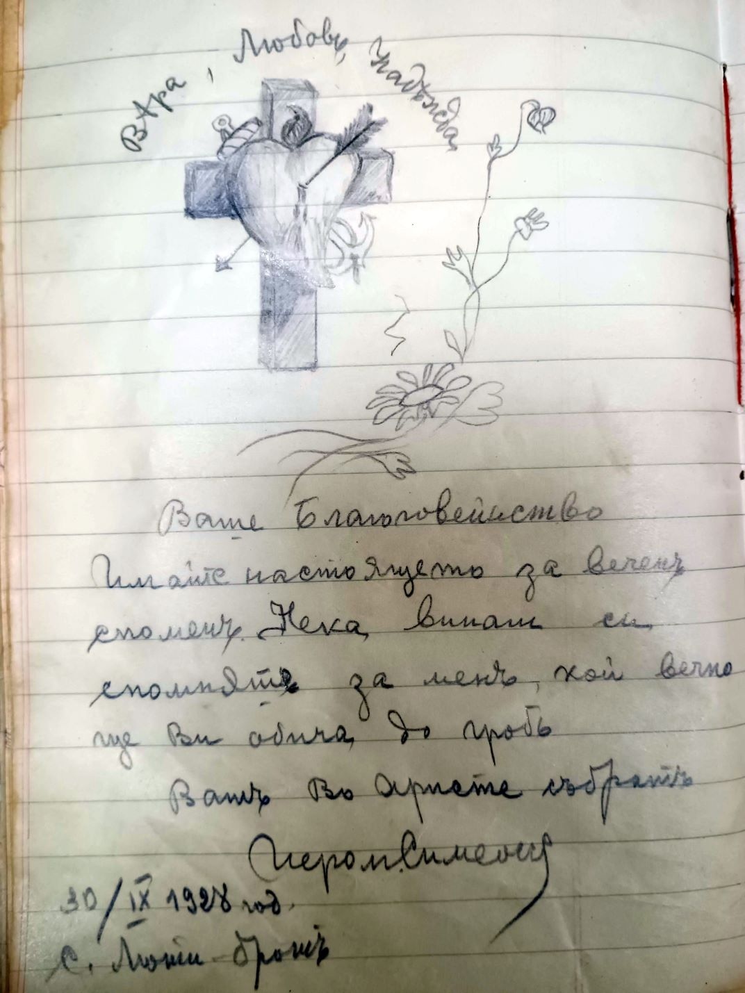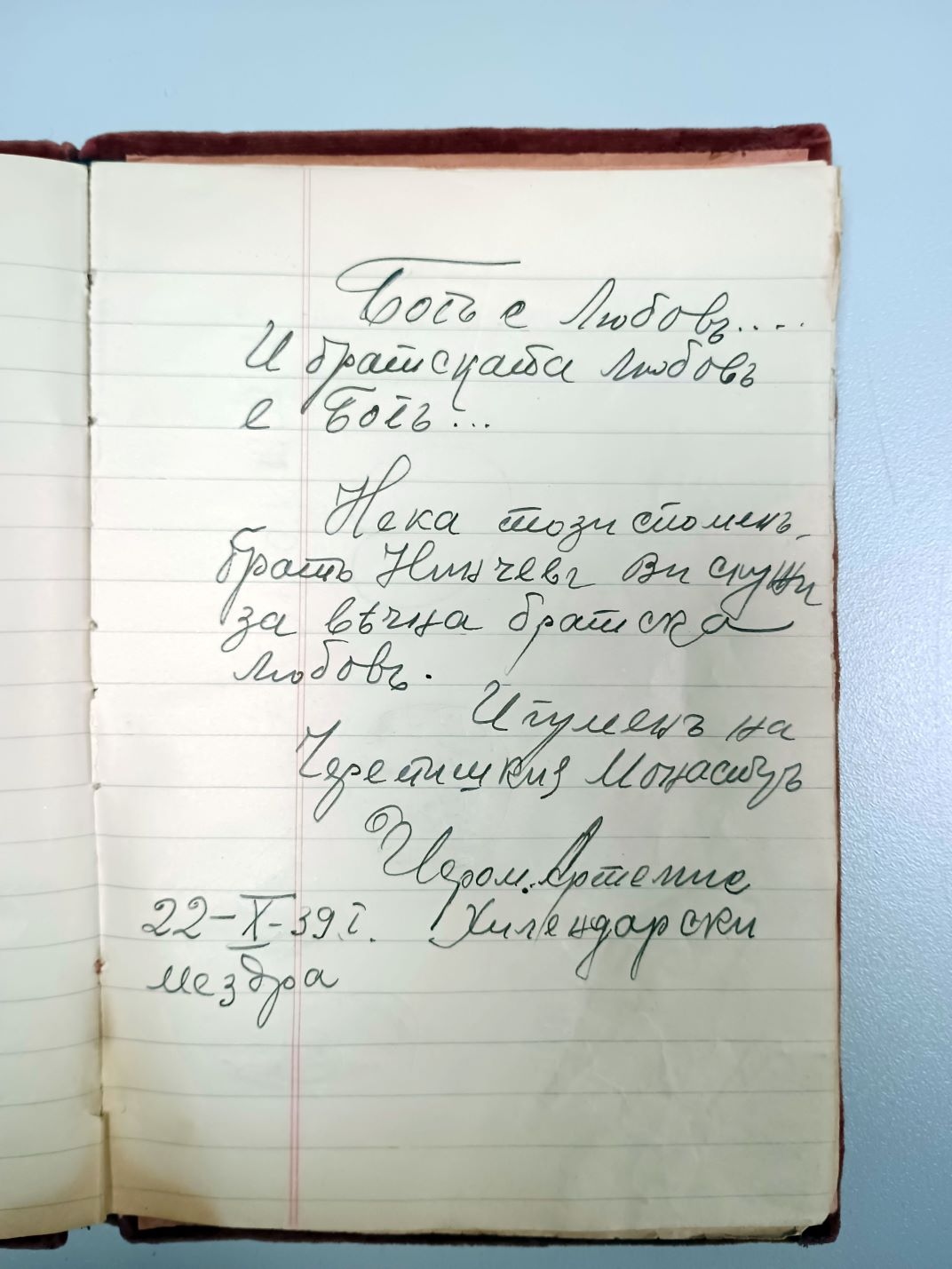 Централно място в изложбата заема книжка (албум) за спомени на учениците от Випуск 1924 г. на свещеническото училище в Черепиш, принадлежала на протойерей Николай П. Нинчев (1899-1974 г.) от с. Лютиброд - дългогодишен енорийски свещеник на Мездра от 1929 г. до първата половина на 70-те години на XX век и председател на местното Православно християнско братство „Св. вмчк Георги“, основано през 1933 г. Дарението е направено преди известно време от покойната детска учителка Камелия Димитрова (1971-2020 г.).
