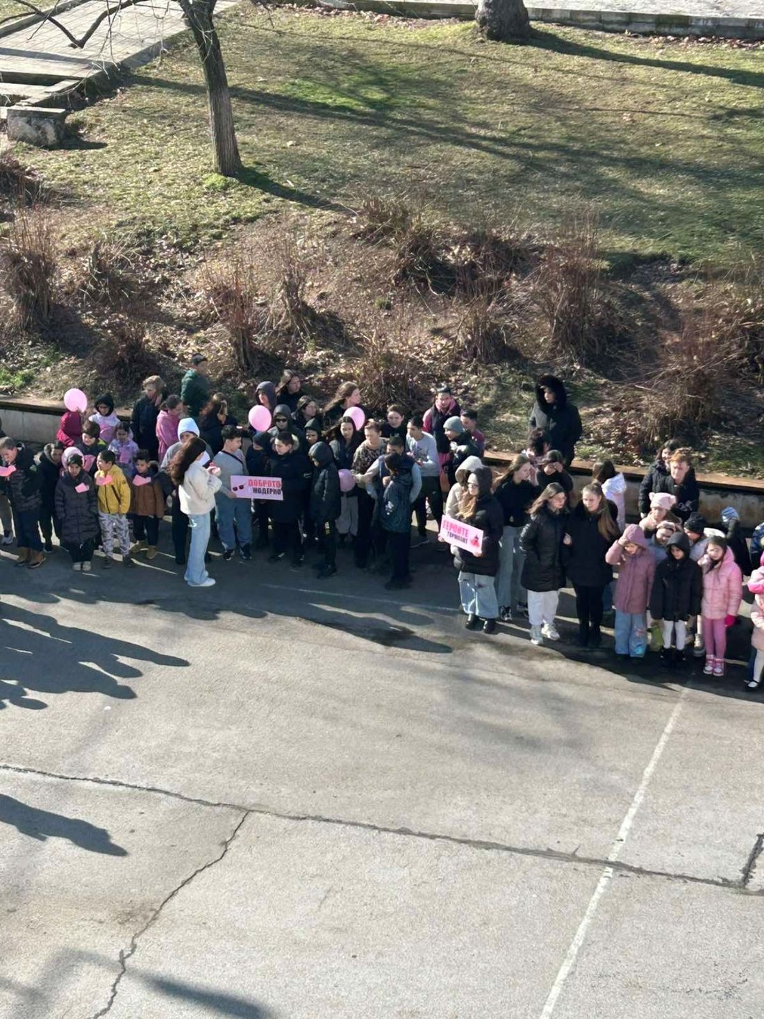 В училището бе поставена и специална дъска за послания, на която учениците имаха възможност да напишат своите добри думи, призиви за подкрепа и обещания за приятелство и уважение. Кулминацията на събитието бе пускането на розови балони в небето – символичен жест на освобождаване от тормоза и насилието, и на надеждата за по-добра и по-толерантна училищна среда.