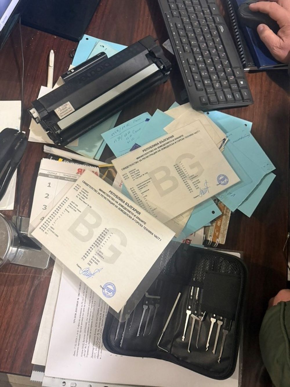 - компютърни конфигурации, принтер, множество флаш памети, дупци и други консумативи, свързани с престъпната дейност.