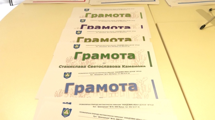 Наградиха най-добре представилите се ученици от ППМГ „Акад. Иван Ценов“ – Враца в XXXІV математически турнир „Черноризец Хр